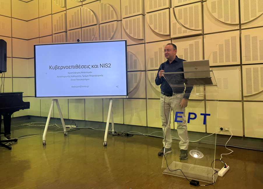 On 20 October 2025, Christoforos Ntantogian from Ionian University delivered a presentation at the Hellenic Broadcasting Corporation (ERT) during a dissemination event dedicated to cybersecurity and digital resilience in the